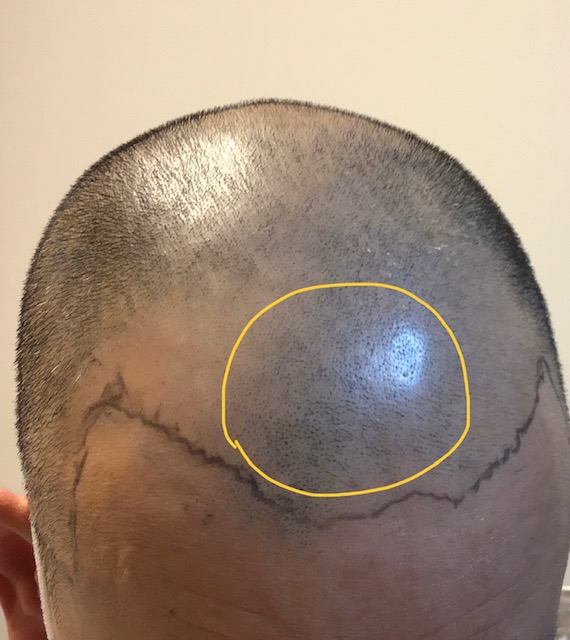 ②の写真の前頭中央部に肌感が見えるのは、2年が経ち自毛が無くなったことが原因でした。